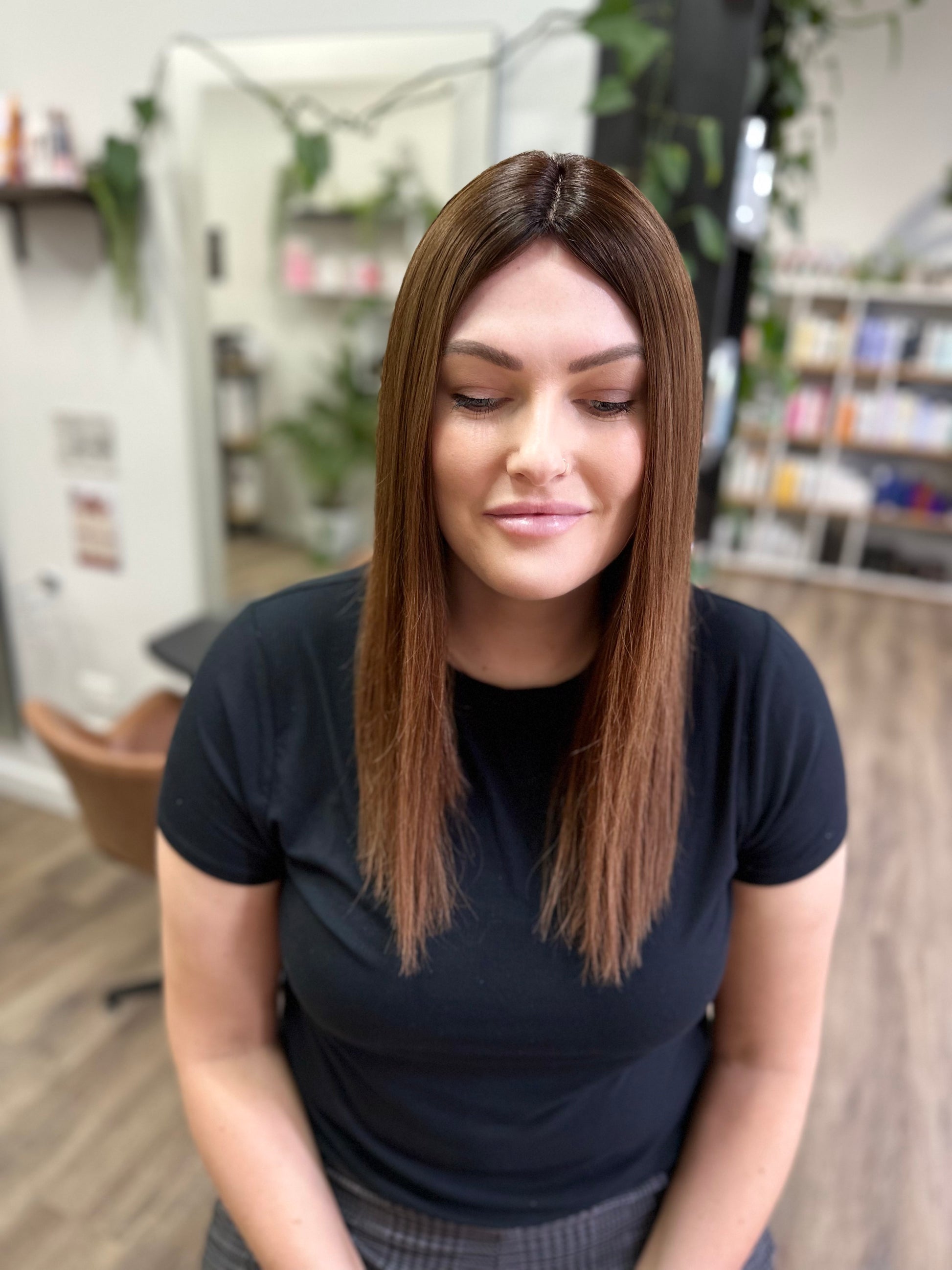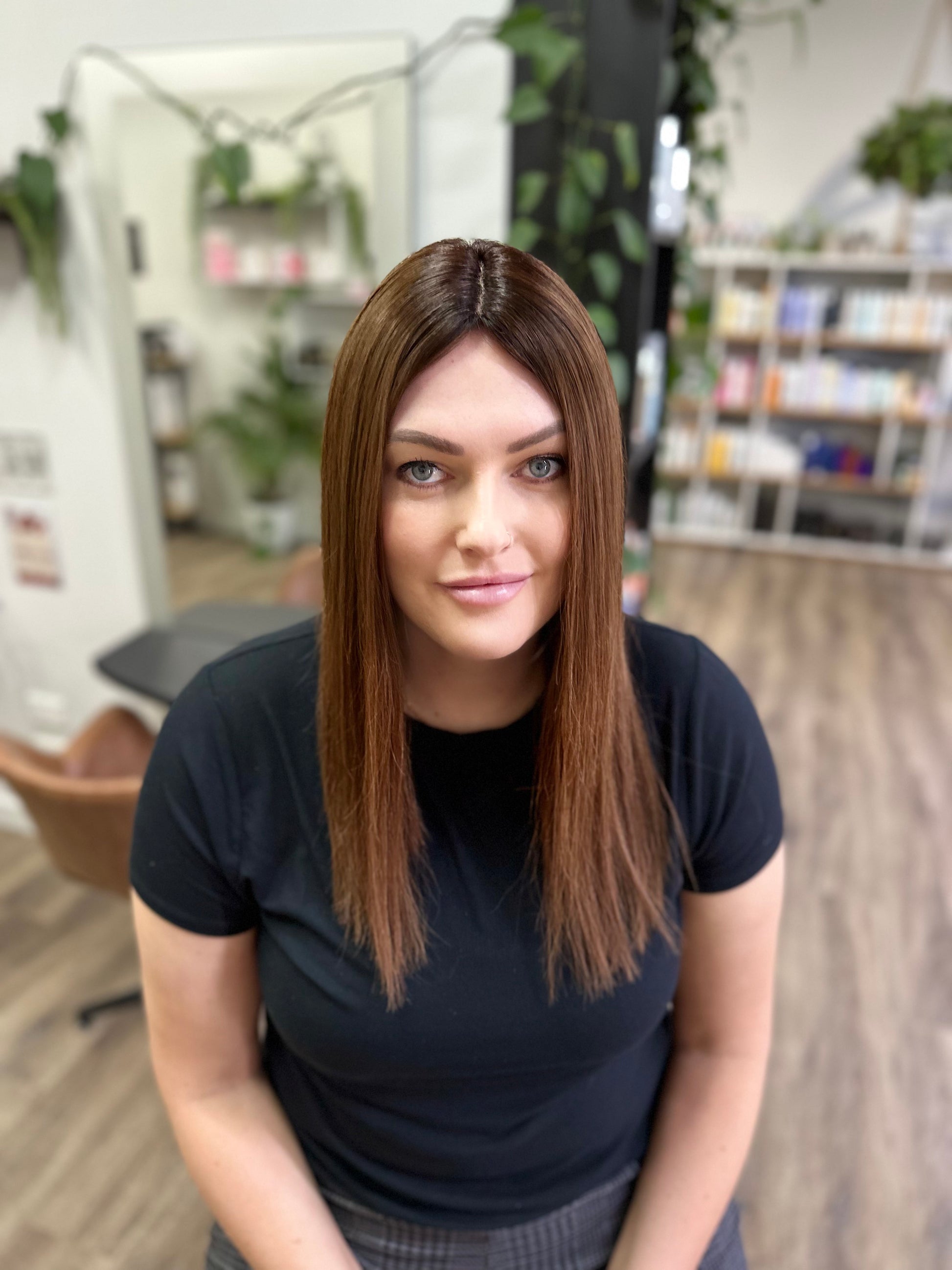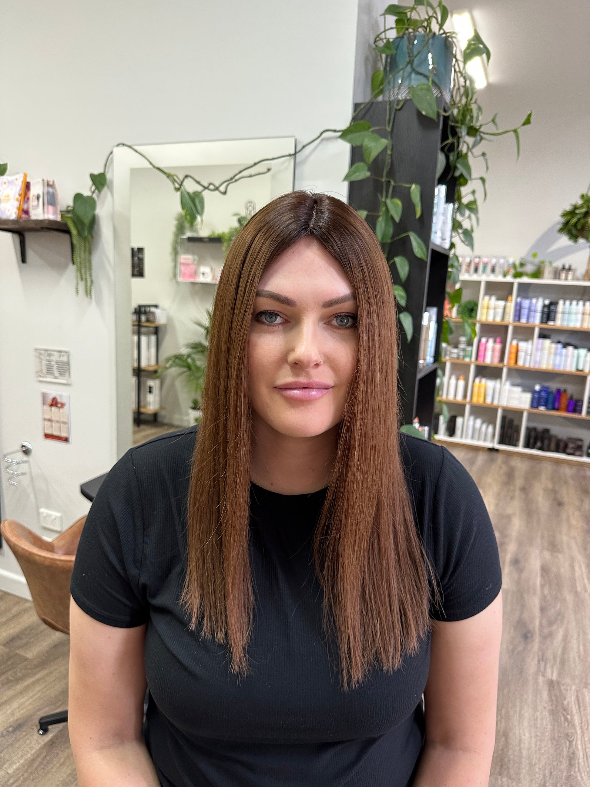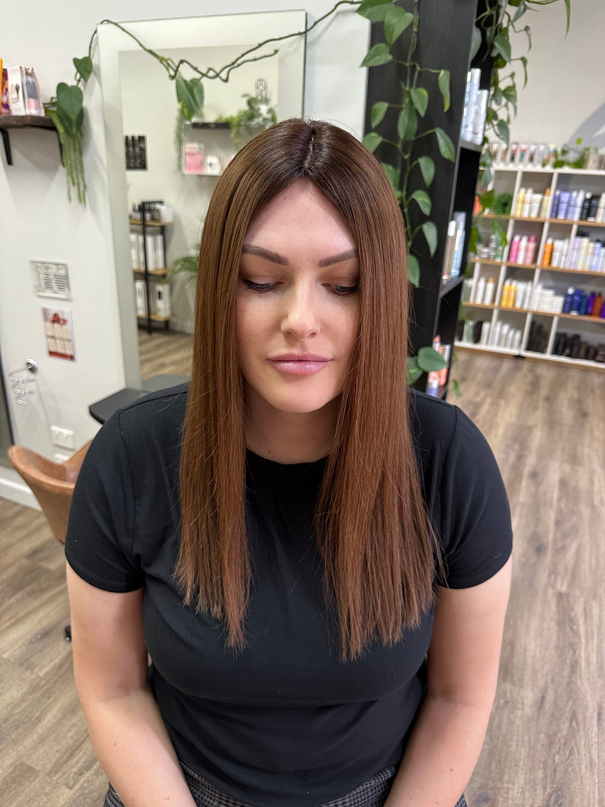 Mia's expert colouring makes blending with your natural hair effortless. The topper enhances your existing hues, adding layers of depth and dimension that harmonise with your unique style.